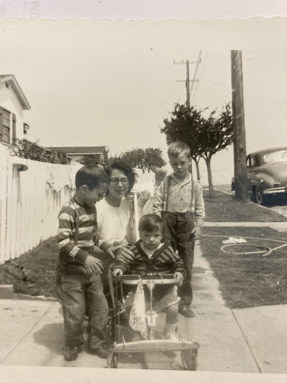 This is where I am supposed to introduce myself. I have decided on a couple of pictures to start with. This old black and white picture came from my cousin a few years ago. That is her mother and my two brothers and myself in front of my grandfathers house in El Cerrito. On the back of the picture somebody wrote 1952.